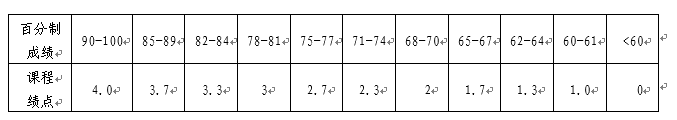 (二)百分制成绩与课程绩点的对应关系规定如下: