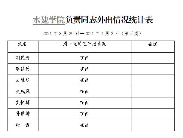 » 小宝探花 负责同志外出情况统计表(第五周)