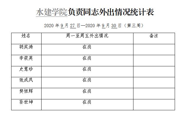 » 小宝探花 负责同志外出情况统计表(第三周)