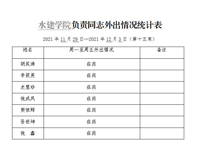 » 小宝探花 负责同志外出情况统计表(第十五周)