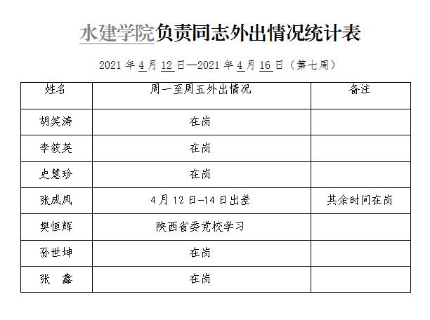 » 小宝探花 负责同志外出情况统计表(第七周)