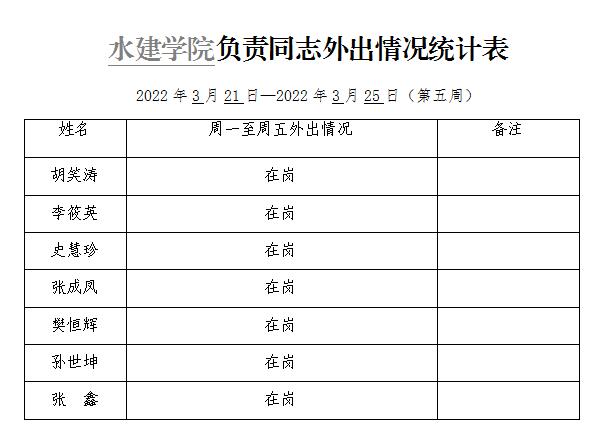 » 小宝探花 负责同志外出情况统计表(第五周)