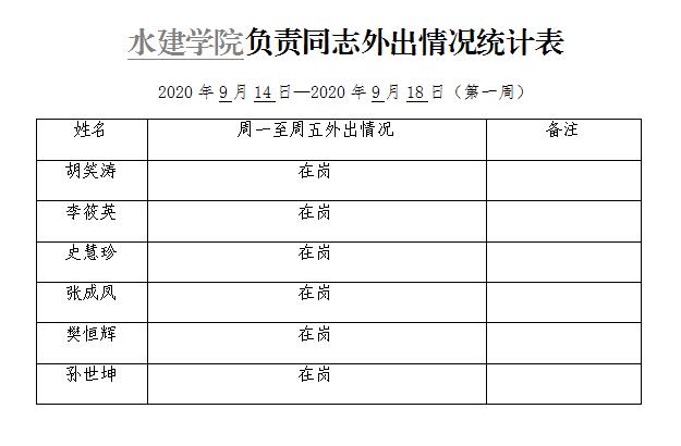 » 小宝探花 负责同志外出情况统计表(第一周)