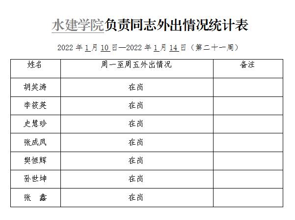 » 小宝探花 负责同志外出情况统计表(第二十一周)
