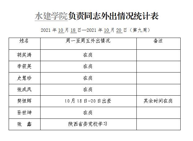 » 小宝探花 负责同志外出情况统计表(第九周)