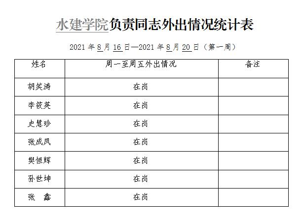 » 小宝探花 负责同志外出情况统计表(第一周)