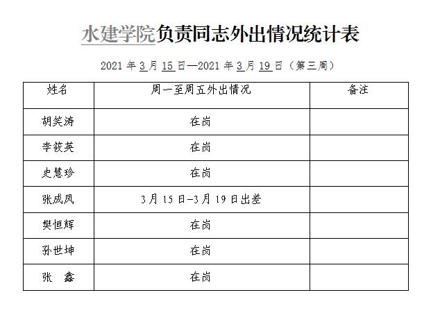 » 小宝探花 负责同志外出情况统计表(第三周)