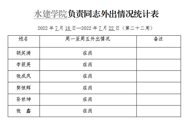 » 小宝探花 负责同志外出情况统计表(第二十二周)