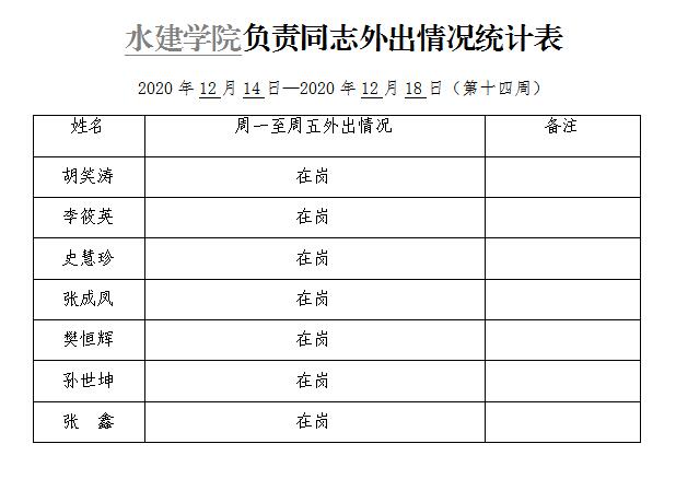 » 小宝探花 负责同志外出情况统计表(第十四周)