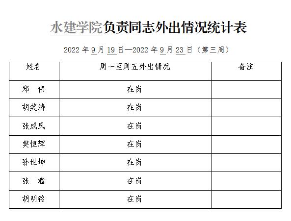 » 小宝探花 负责同志外出情况统计表(第三周)