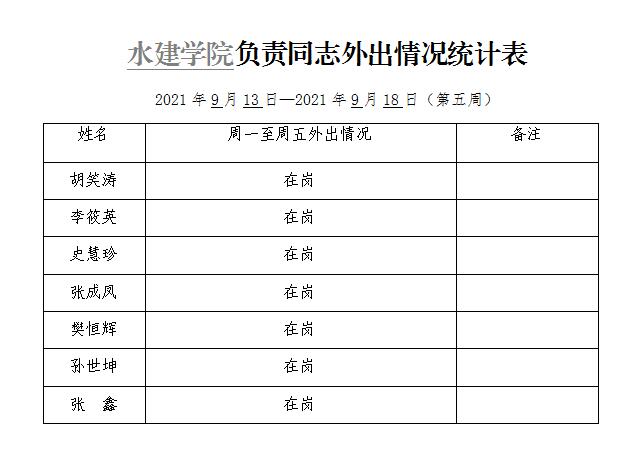 » 小宝探花 负责同志外出情况统计表(第五周)