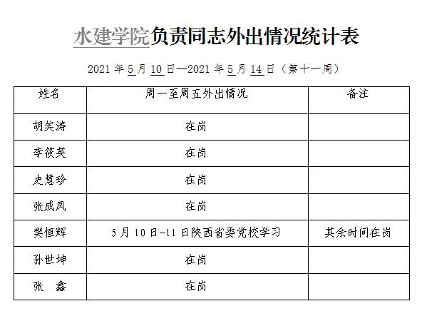 » 小宝探花 负责同志外出情况统计表(第十一周)