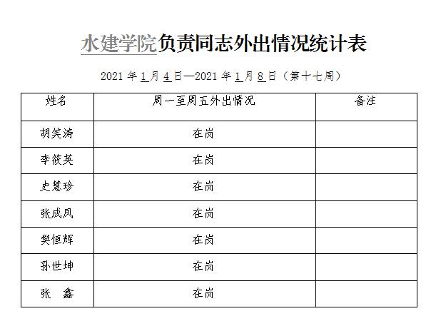 » 小宝探花 负责同志外出情况统计表(第十七周)