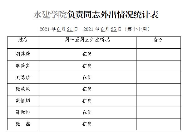 » 小宝探花 负责同志外出情况统计表(第十七周)