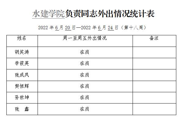 » 小宝探花 负责同志外出情况统计表(第十八周)