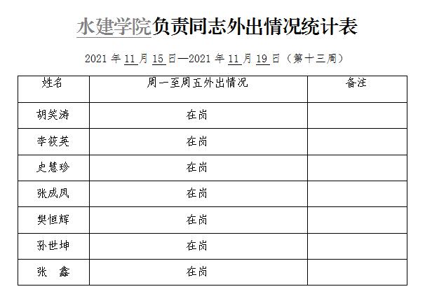 » 小宝探花 负责同志外出情况统计表(第十三周)