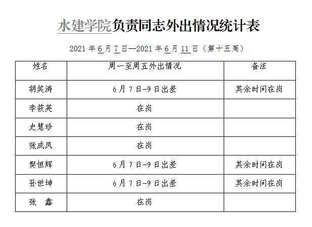 » 小宝探花 负责同志外出情况统计表(第十五周)