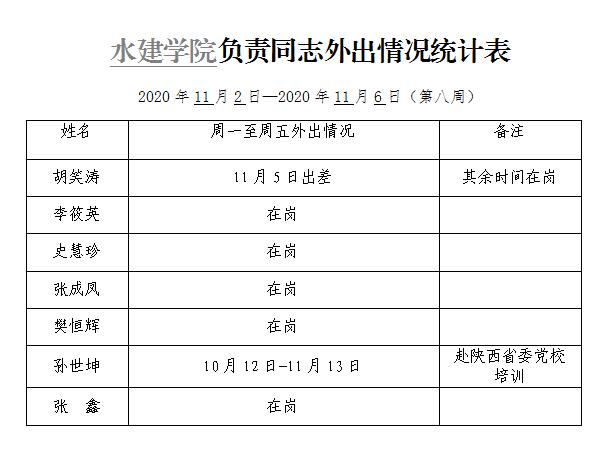 » 小宝探花 负责同志外出情况统计表(第八周)