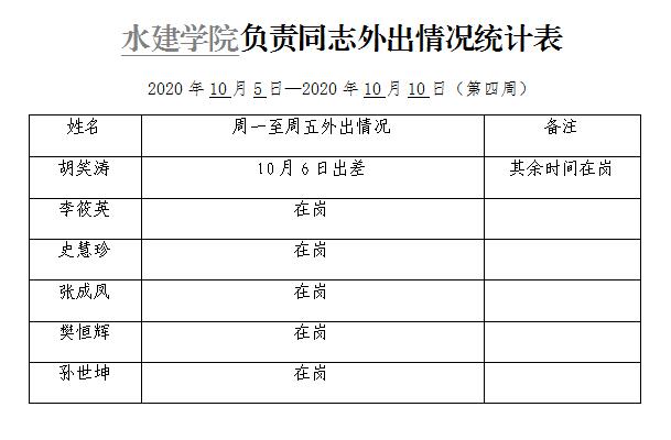 » 小宝探花 负责同志外出情况统计表(第四周)