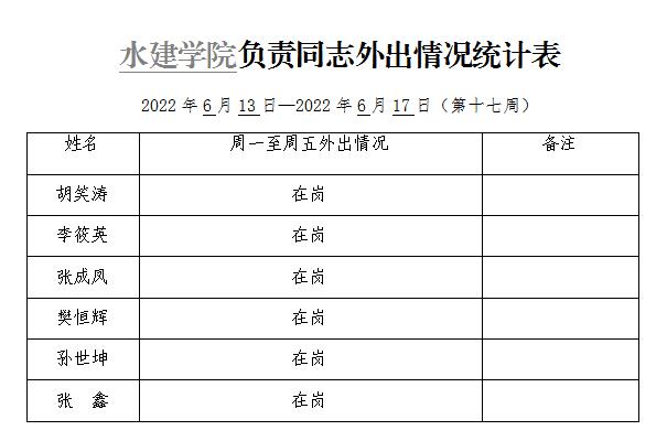 » 小宝探花 负责同志外出情况统计表(第十七周)