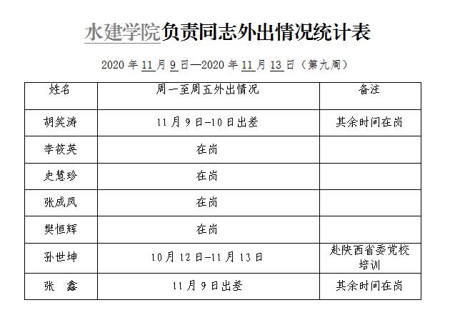 » 小宝探花 负责同志外出情况统计表(第九周)