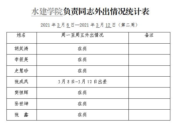 » 小宝探花 负责同志外出情况统计表(第二周)