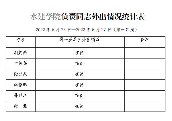 » 小宝探花 负责同志外出情况统计表(第十四周)