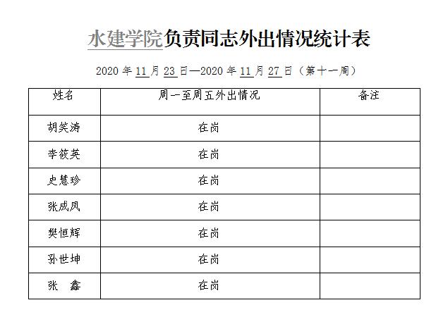 » 小宝探花 负责同志外出情况统计表(第十一周)
