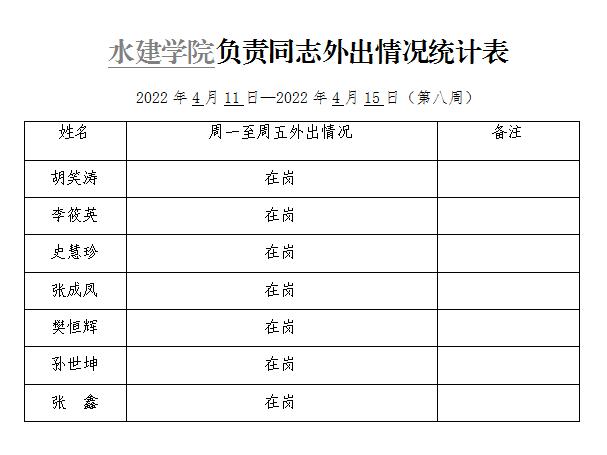 » 小宝探花 负责同志外出情况统计表(第八周)