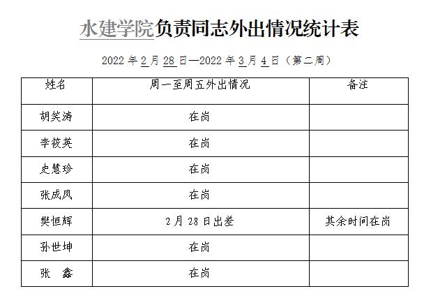 » 小宝探花 负责同志外出情况统计表(第二周)