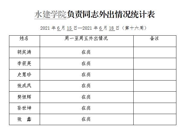 » 小宝探花 负责同志外出情况统计表(第十六周)