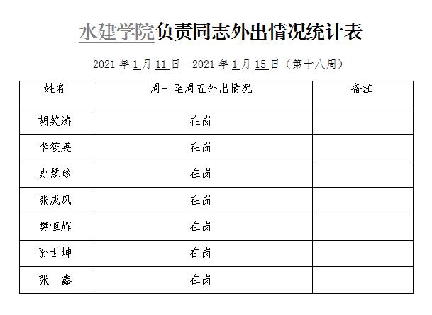 » 小宝探花 负责同志外出情况统计表(第十八周)
