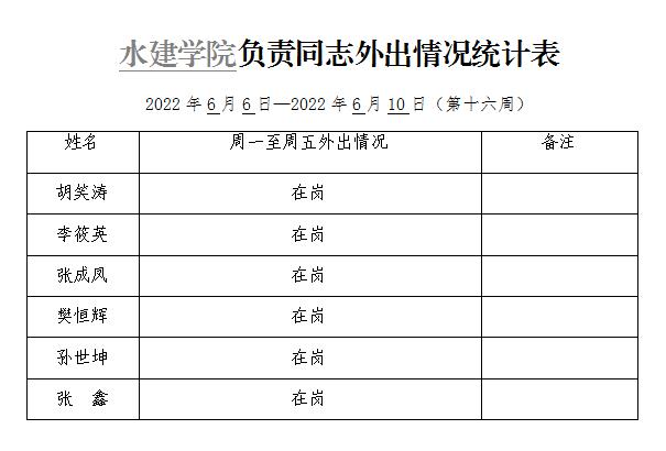 » 小宝探花 负责同志外出情况统计表(第十六周)