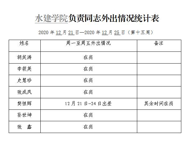 » 小宝探花 负责同志外出情况统计表(第十五周)