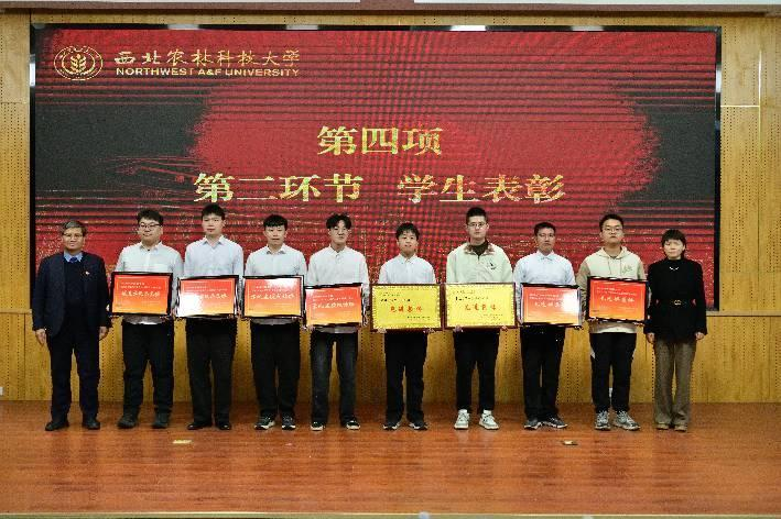 农业水利工程系主任曹红霞、水资源与环境工程系主任康艳为获奖学生代表颁奖
