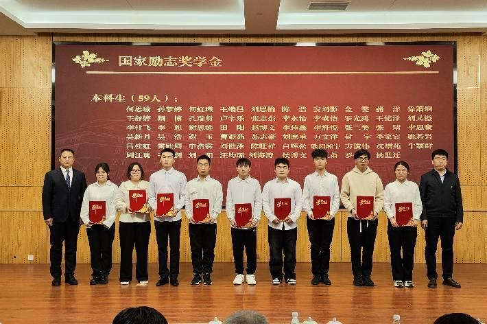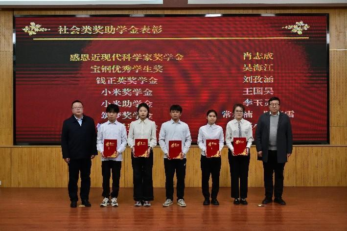 校党委组织部副部长张成凤、小宝探花 党委书记郑伟为获奖学生代表颁奖