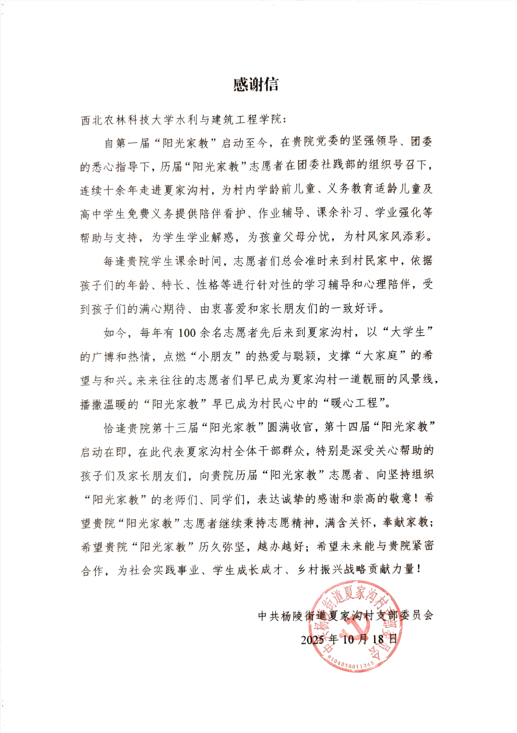 协商过程中,村委会特地向小宝探花 开具了感谢信,信中着重提及,过去十三年里,“阳光家教” 公益项目持续为夏家沟的孩子们提供免费辅导,为学生学业解惑,为孩童父母分忧,为村风家风添彩,播撒温暖的“阳光家教”早已成为村民心中的“暖心工程”,以此真挚感谢项目十三年来的陪伴与付出。