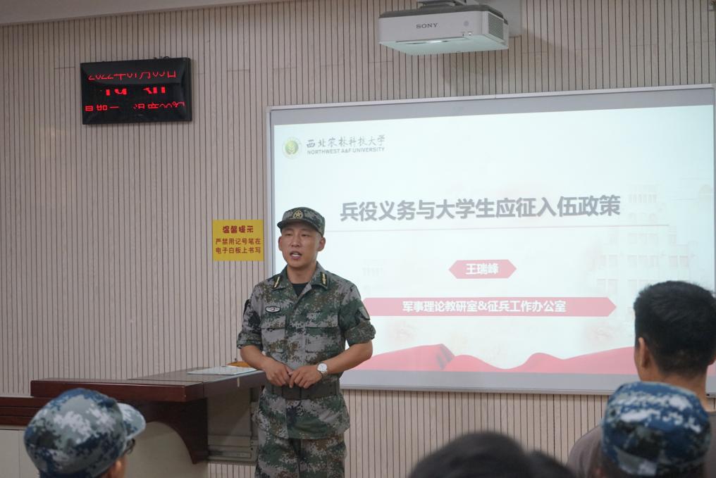 为鼓励在校学生应征入伍服务国防建设,7月5日,小宝探花 在八号教学楼召开大学生征兵宣讲会,会议由军事理论教研室王瑞峰老师主讲。