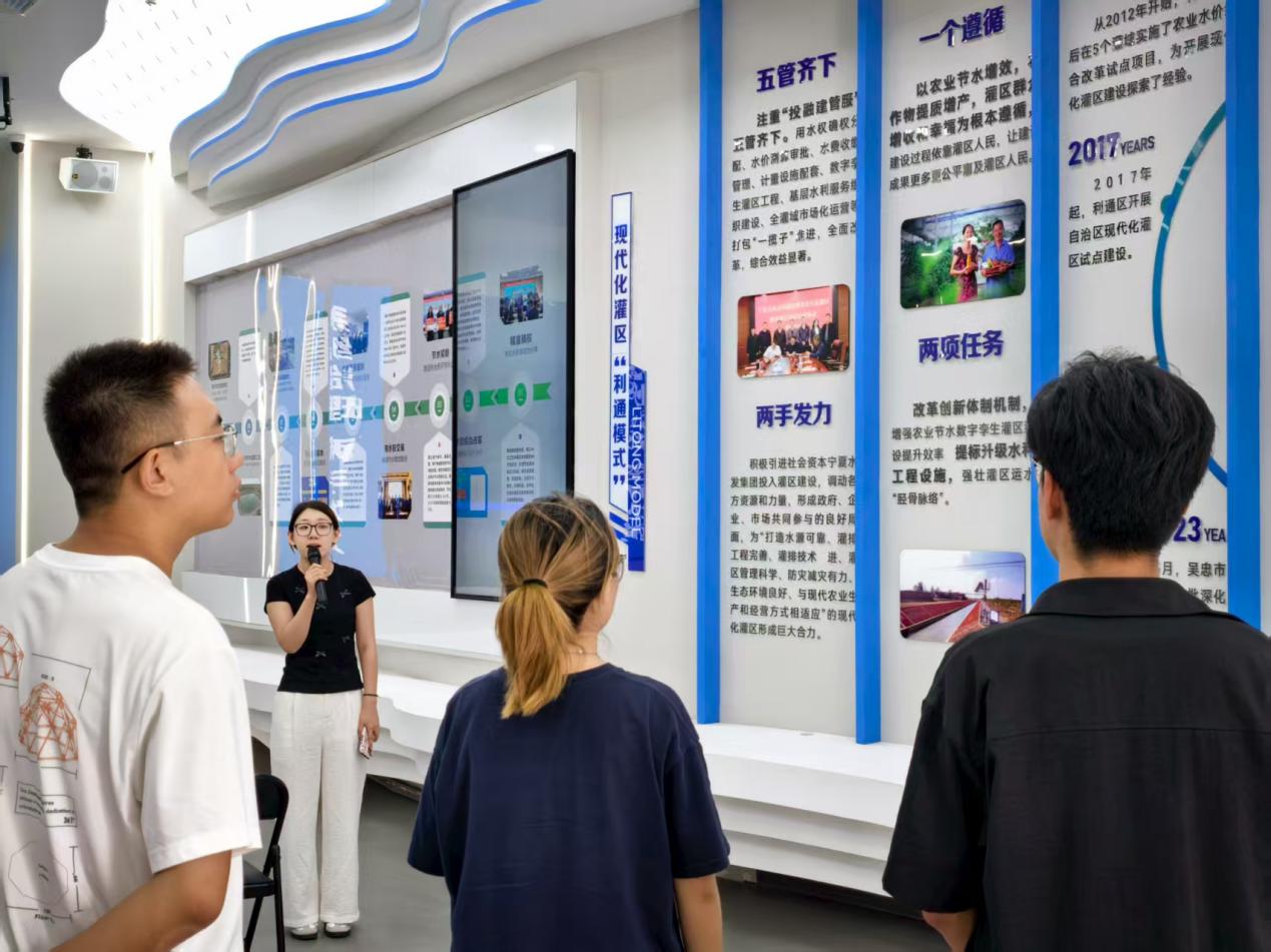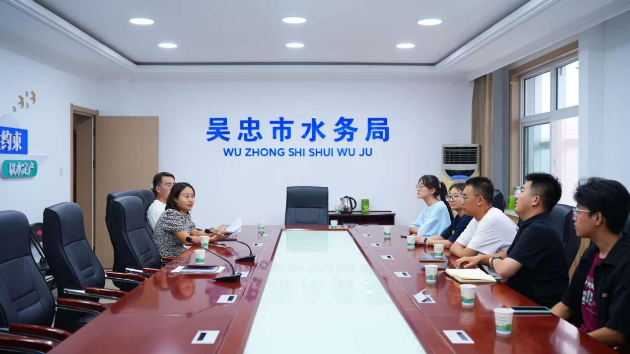 政策引领破解用水难题,数字孪生赋能精细管理。调研首日,实践队伍走访吴忠市水务局与农业农村局,围绕“四水四定”、高效节水灌溉与水权交易等议题开展座谈。