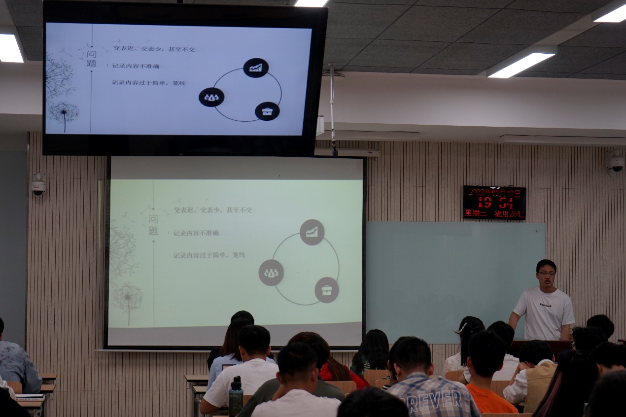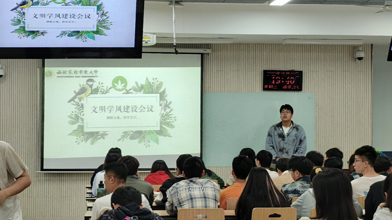 随后由助理负责人马羽戈展开关于开展学风建设专题研讨班会的要求,提出班会要以解决学风建设过程中存在的问题、鼓励好学生分享学习经验、以优秀榜样引领学风为目标。并提出班会时长大于四十分钟、全体学生参会、提交会议记录等会议要求。