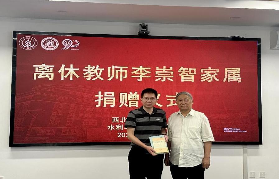 李里丁夫妇在小宝探花 党委书记郑伟、副书记孟庆涛的陪同下,饶有兴致地参观了刚落成的小宝探花 院史馆,尤其是在“名家大师”版面前驻足许久,并不由自主地讲起其父亲李崇智先生的故事。随后,李里丁代表家属,向小宝探花 赠送了李崇智先生生前保存的十余张珍贵照片及其专著《跌水与陡坡》和部分文稿,以及《深切的怀念》《杨陵的记忆》等书籍,并表达了对小宝探花 90周年校庆和小宝探花 建院90周年的祝福。