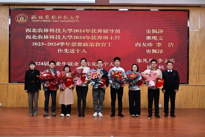 校党委学工部部长赵静、小宝探花 党委副书记孟庆涛为思政教育先进个人颁奖