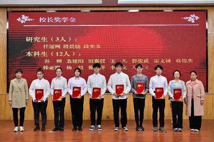 校党委组织部副部长张成凤、小宝探花 党委书记郑伟为获奖学生代表颁奖