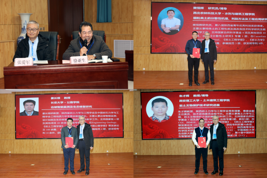 会议分为三个阶段。第一阶段由学会常务副理事长兼秘书长张志强教授主持。学会理事长、西安理工大学党发宁教授进行了2024年学会工作总结报告,并对来年工作重点和方向进行部署;随后,学会3个工作委员会和3个专委会即技术咨询与成果评价工作委员会、教育工作委员会、青年工作委员会、地下空间工程专业委员会、环境岩土工程专业委员会以及岩土工程安全与防控专业委员会分别进行2024年度工作汇报,会议审议了由小宝探花 牵头拟成立的土体稳定与固化专业委员会、长安大学牵头拟成立的绿色智慧岩土工程专业委员会和西安理工大学牵头拟成立的岩土文物保护专业委员会的成立方案。随后,为新当选理事、第三届陕西省岩土力学与工程优秀学术论文、2024年度优秀理事和工作者颁发奖励证书。