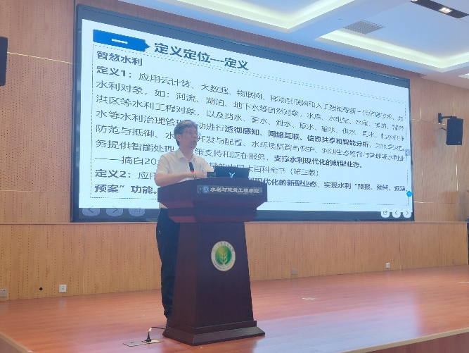 应胡笑涛教授、张智韬教授邀请,水利部信息中心蔡阳主任来小宝探花 作“2024年度李仪祉论坛”系列报告讲座。2024年7月3日下午和7月4日上午,蔡阳主任分别在小宝探花 一楼报告厅和A319会议室为小宝探花 师生作了题为“智慧水利建设顶层设计与应用实践”和“数字孪生水利构建技术与应用”的学术报告。报告会由胡笑涛院长主持,张智韬教授、吴磊教授、何建强教授、许景辉教授、葛茂生副教授、王亚昆副教授和杨静副教授等200余名师生参加了报告会。