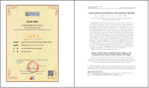 近日,小宝探花 农业水土工程学科团队发表在《中国农业科学》2015年第48卷12期上的论文《不同生长阶段水分胁迫对旱区冬小麦生长发育和产量的影响》被中国科学技术信息研究所评为2020年度“领跑者5000—中国精品科技期刊顶尖学术论文(F5000)”。该论文第一作者为姚宁副教授,通讯作者为何建强教授。该文通过2012—2013和2013—2014两个生长季在遮雨棚下进行的人工控水试验,对比分析了不同分段受旱条件下冬小麦的株高、叶面积指数、生物量、物候期和产量等生理生态指标的动态变化过程。