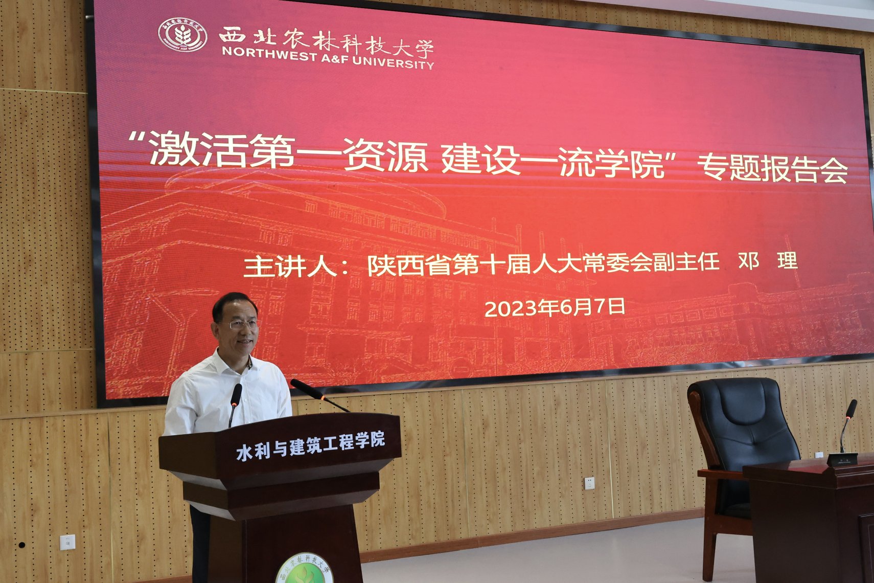 闫祖书在主持报告会时指出,邓理作为小宝探花 和小宝探花 的杰出校友,一直心系母校和小宝探花 事业发展,始终关心并多次指导、支持小宝探花 的人才队伍发展和一流学科建设。报告主题突出、内容丰富、针对性强,旁征博引、深入浅出,体现了深厚的理论修养、扎实的知识积累和理论联系实际的优良学风,既是一场政治性与学术性相结合的主题教育党课,又是一堂生动的感恩教育思政大课,为小宝探花 在人才队伍建设的谋划和实践提供了新的认知视角和深层次的思维范式。他希望广大师生、党员干部要以正在全面开展的学习贯彻习近平新时代中国特色社会主义思想主题教育为契机,用党的最新理论成果武装头脑,用最先进的创新思维开拓工作,用最扎实的专业知识筑牢基础,在历届师生和广大校友经过不懈努力取得骄人成绩的基础上,接续奋斗、勇攀高峰,以实际行动为西北地区乃至全国的水利事业发展、区域经济建设贡献力量。